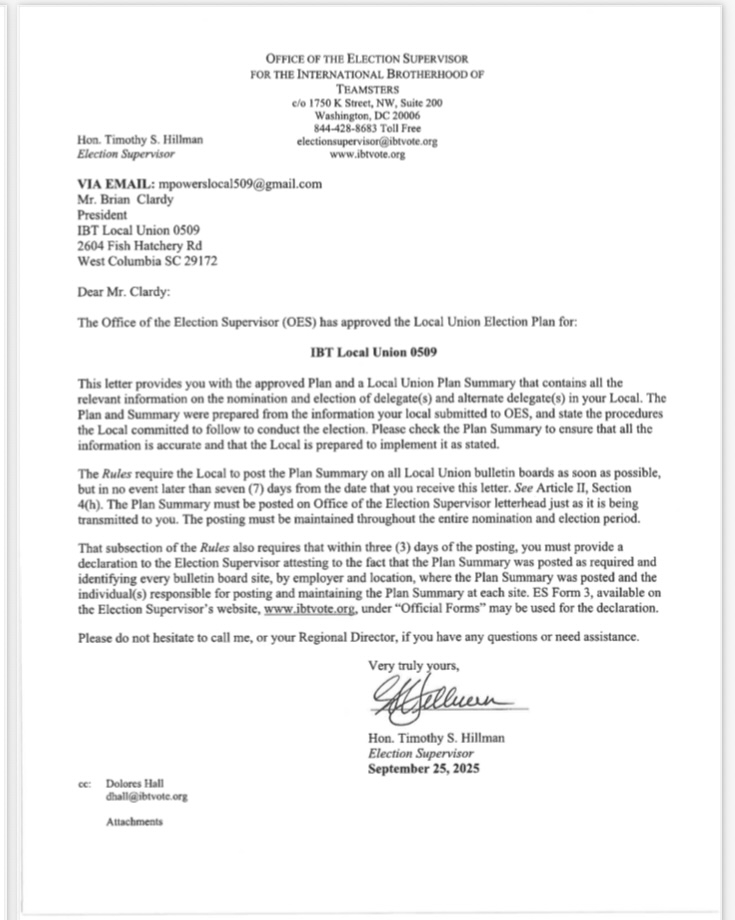 President Brian Clardy visited the UPS Grennville Facility and its Local 509 members.